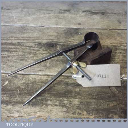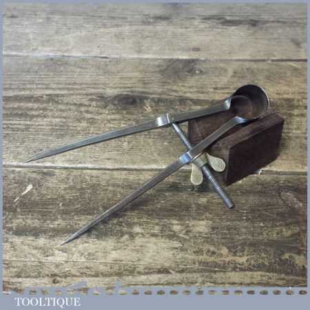 Interesting P.C.L & Co vintage 5 ¾” hand forged sprung steel square leg steel dividers which have a superior spring construction to those often used by engineers but with a stronger construction often seen on leatherworking dividers