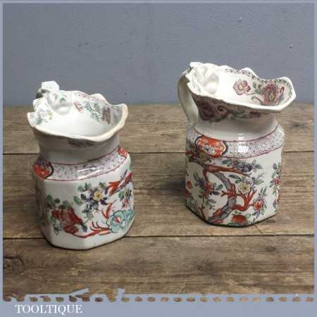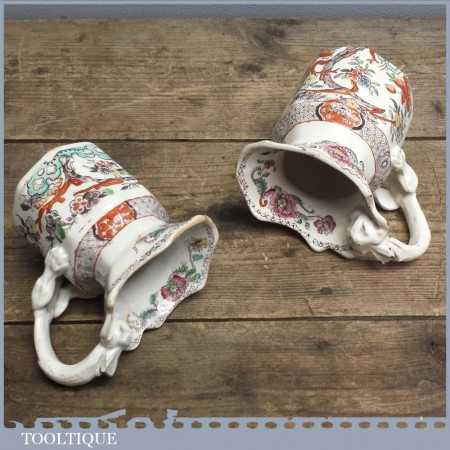 Pair of 19th century Royal Terracotta Porcelain jugs with relief handles of what looks to be a elongated hare. Good examples in good condition with no chips or cracks.
