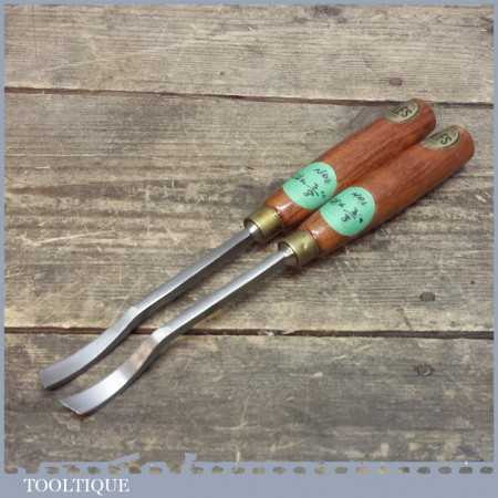 Pair of Ashley Isles left and right hand corner spoon carving chisels measuring 3/8” wide in good lightly used condition.