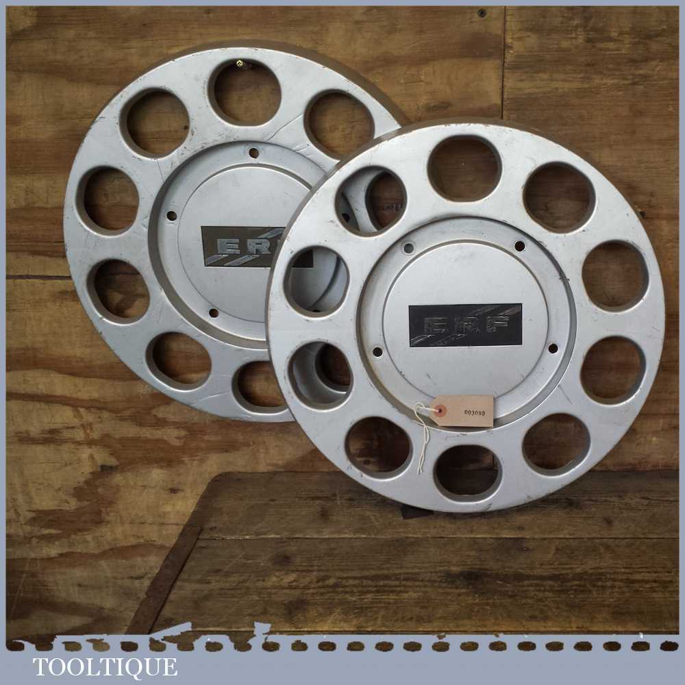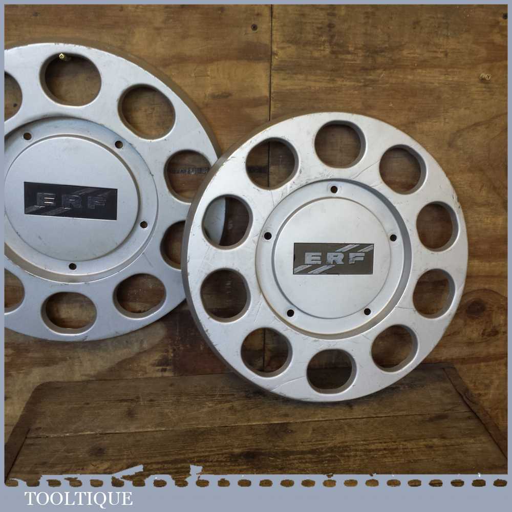 Pair of ERF Plastic 10 stud truck wheel trims in good used condition, see images, measuring approx 17” in diameter.