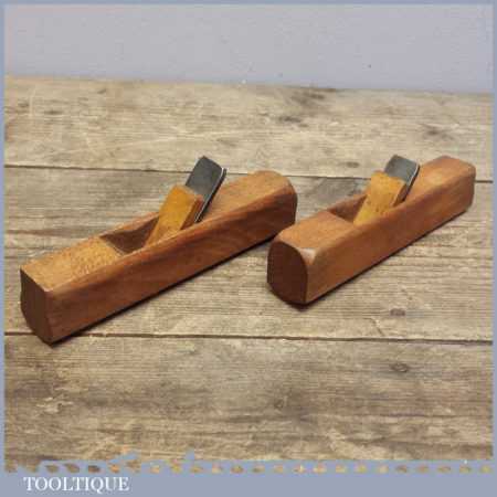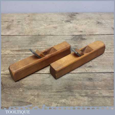Pair of Vintage beech wood pattern makers 5 ½” round sole planes with different degrees of curves to the soles. These are in nice used condition although they have not been set up or sharpened to use.