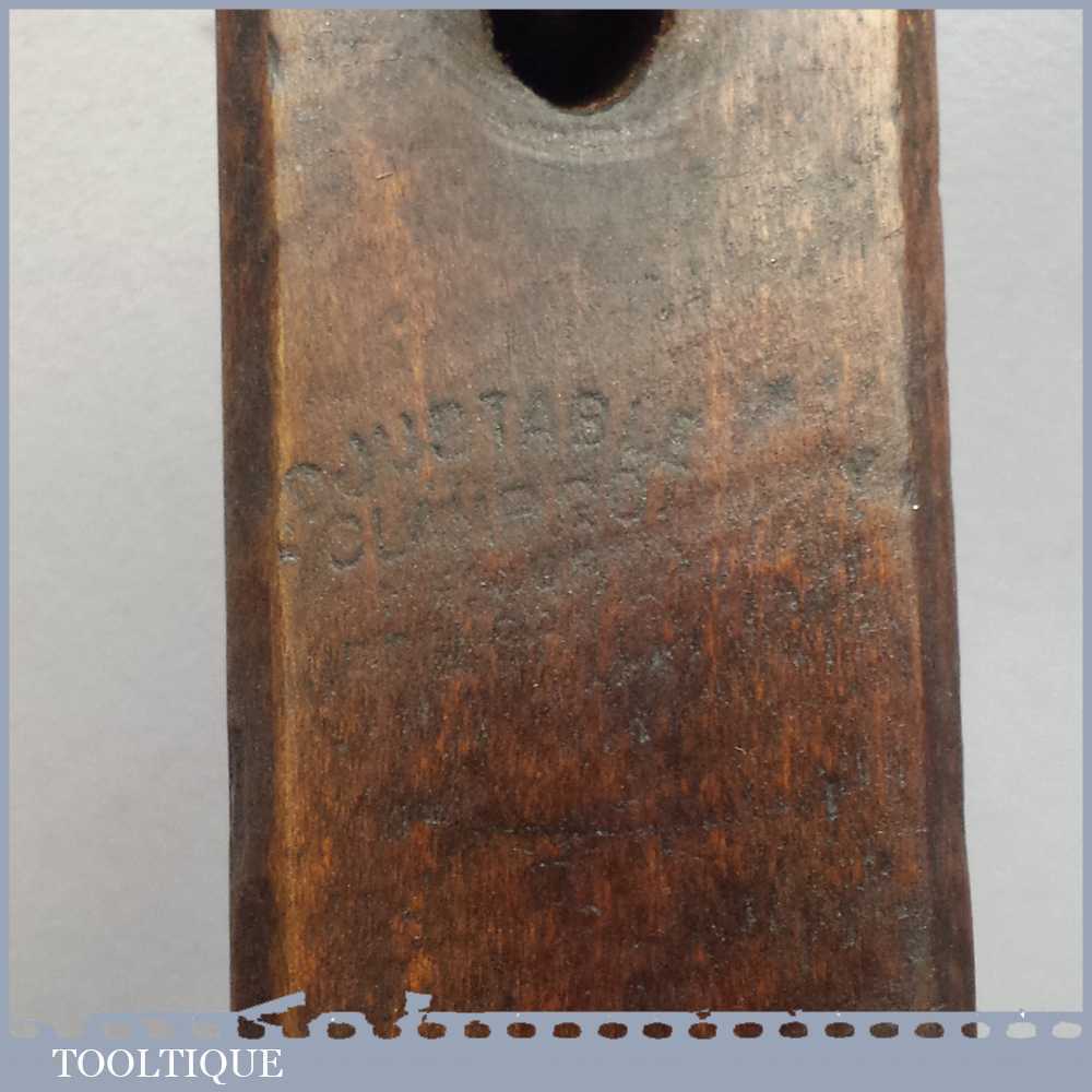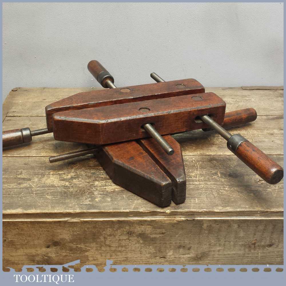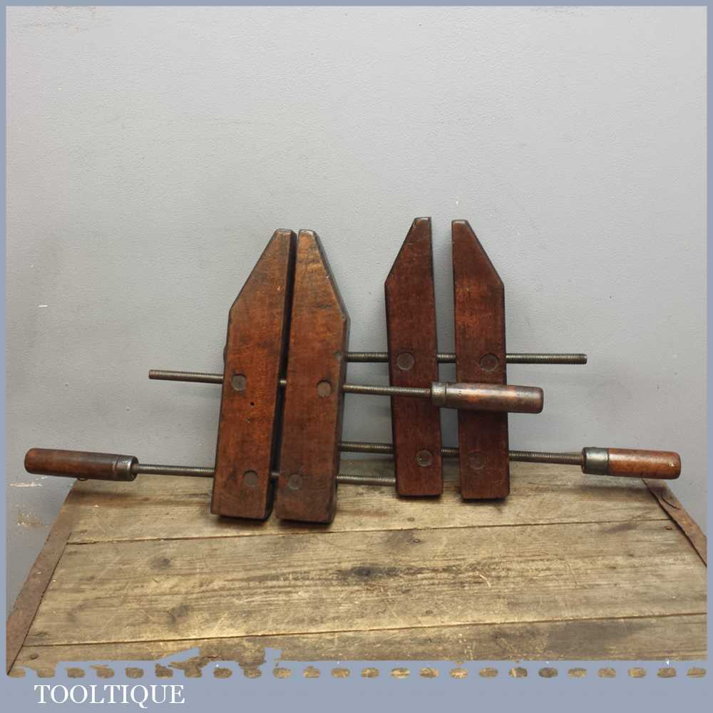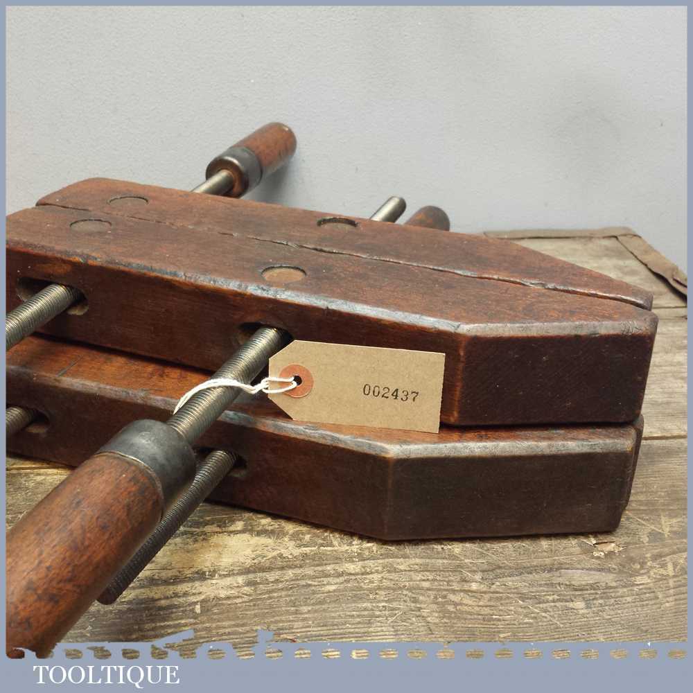Pair of vintage wooden adjustable clamps which are named although it is illegible beneath the mark “adjustable clamp” but were obviously factory made. These have a very good look to them and look the part in a tool collection as well as being in good useable condition.