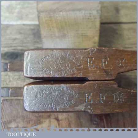 Pair of vintage E. Preston & Sons side rebate beechwood moulding planes in good used condition.