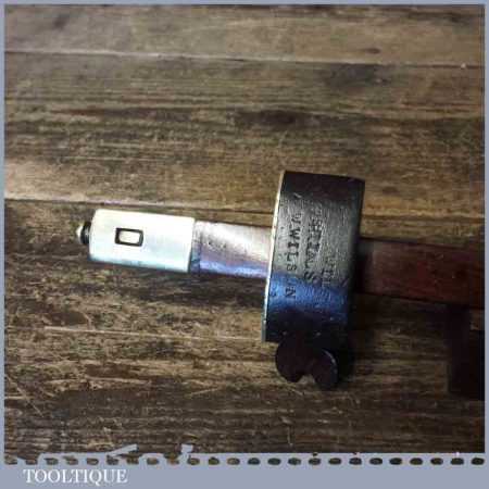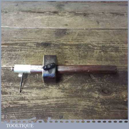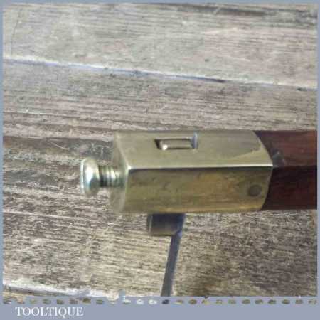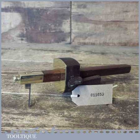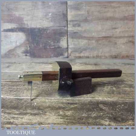Pretty antique rosewood and brass cutting gauge in good used condition. This adjusts gauge moves smoothly into position. Note: Chip in body where it tightens.