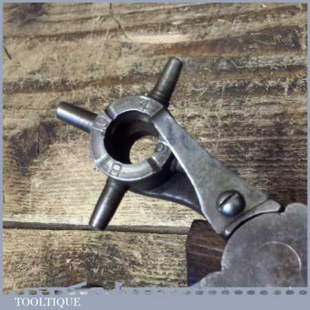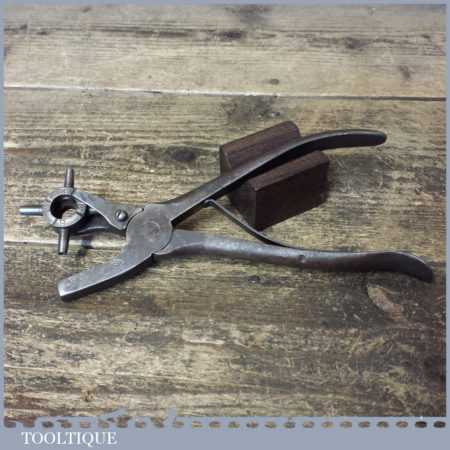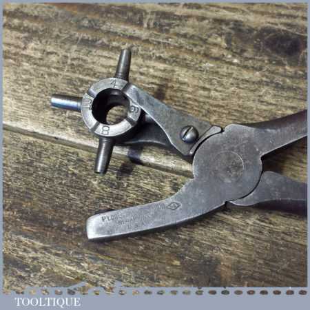 Nice quality vintage R. Lowentraut Mfg. USA leatherworking rotating hole punching pliers in good used condition.