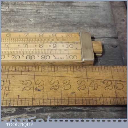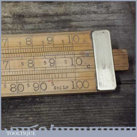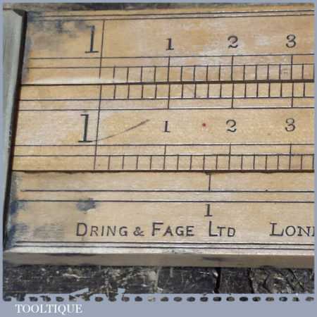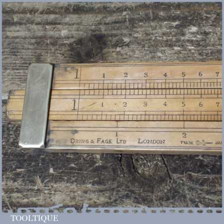Rare 24” antique Dring & Fage of London alcohol slide rule. This rule is single sided with just four scales: A {B,B} Seg Ly. Boxwood with brass end bands.