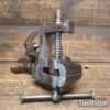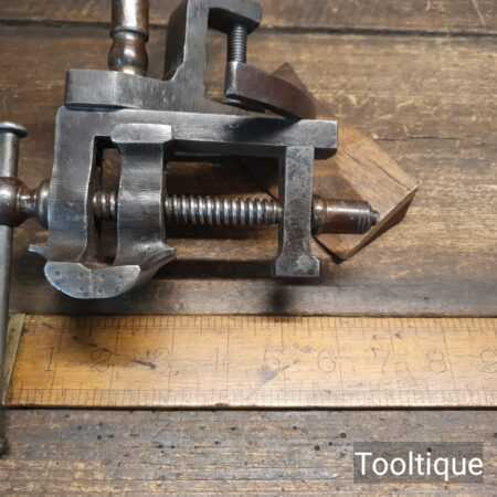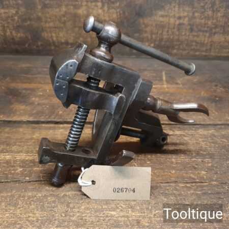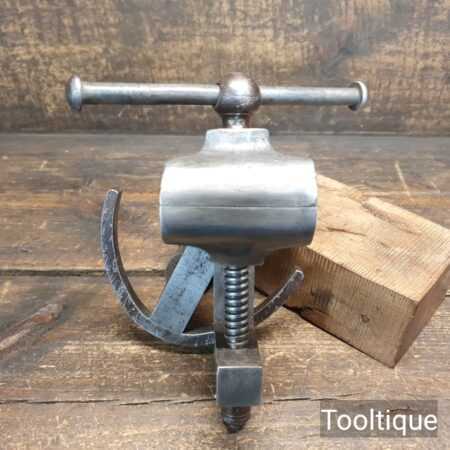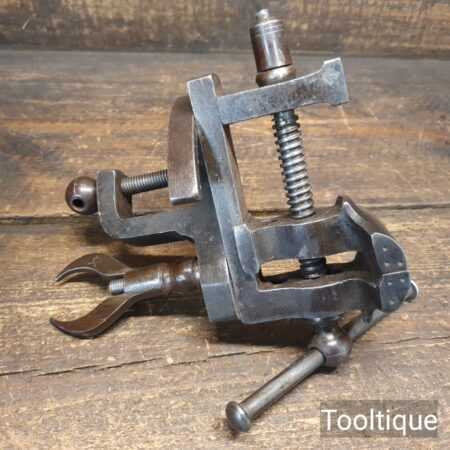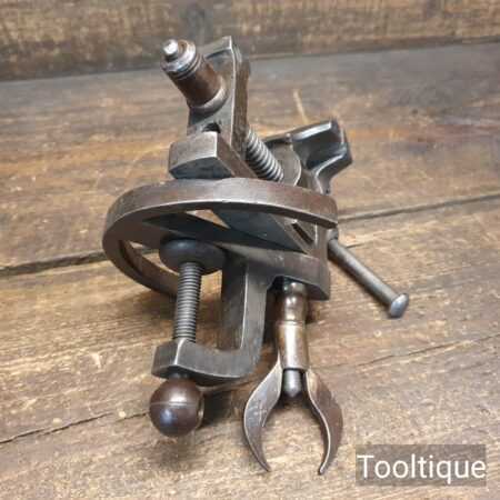 Rare 8” Antique cast steel Masonic Stamped revolving jewellers bench mounted vice with 2 ⅜” wide jaws in good original condition. This has a high resemblance to a Melhuish type I’ve had before in many aspects.