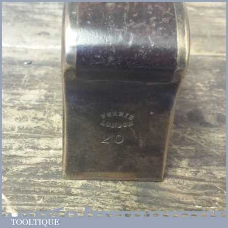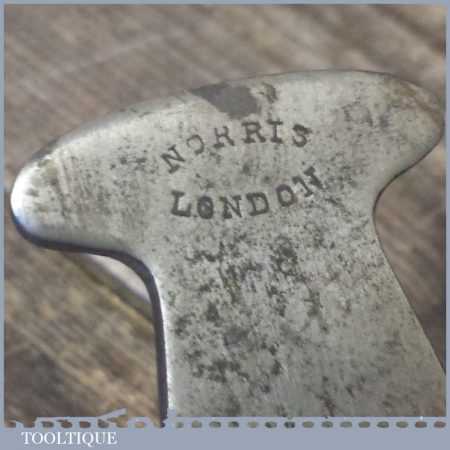 Rare Antique 1 ½” Wide Norris No: 20R steel soled gunmetal shoulder plane in good used condition. The plane has a nice tight throat and good length Norris Iron and what looks to be its original lacquer to the infill. Notes: Minor ½”patch of light pitting to rear of sole and minor scuff marks to body, nothing serious and is a good example.