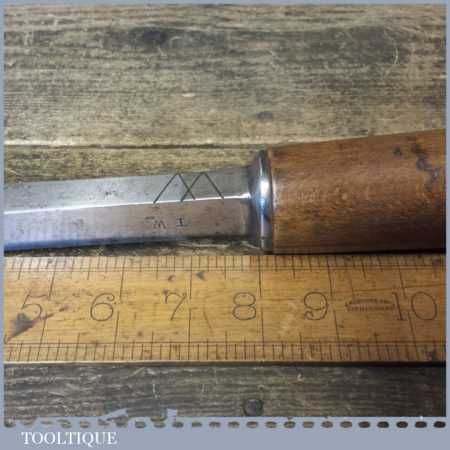 The chisel has been checked to ensure the tang is seated properly and the handle is solid and fit for use. All refurbished chisels are water cooled during the sharpening process to ensure the tempering is not affected. These old cast steel chisels are hand forged and far superior in quality because of the high carbon steel that was used which produces a keener edge, this was also generally used throughout the full length.