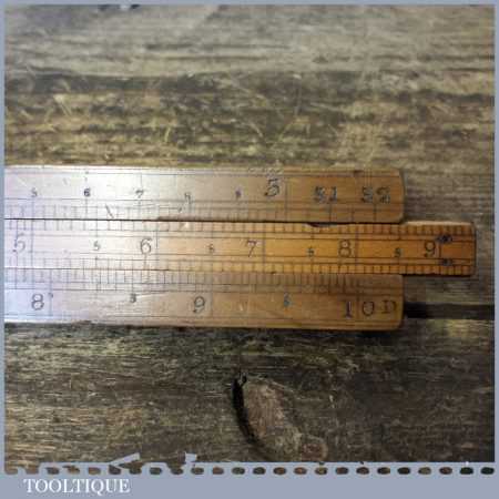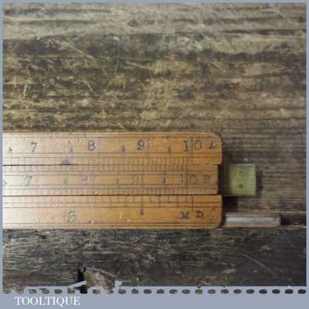 Rare antique 19th Century 4-sided boxwood sliding rule in good used condition. Note: It looks to have had lots of use in its time and had old maintenance to keep the sliders tight as they had worn, but it’s all part of the tools history.