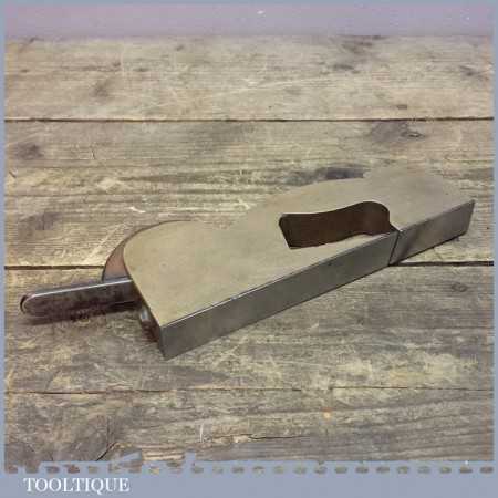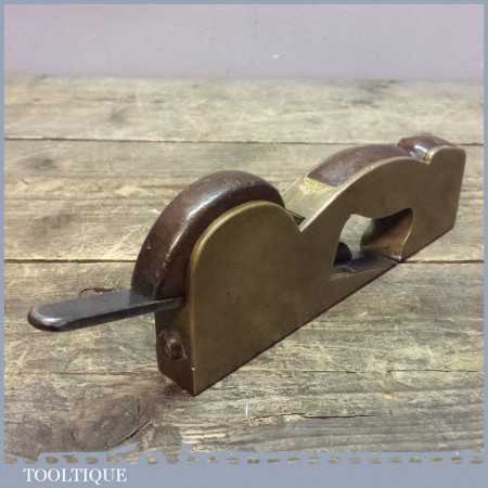 Rare antique brass skew mouth infill shoulder plane with sweated on sole, almost certainly made by a renowned plane maker such as G Miller, Holland or Slater of London due to the quality of construction. The plane measures 7” long and has a mahogany infill whilst the iron is unmarked.