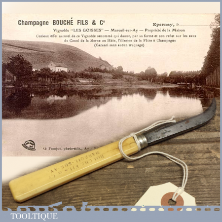 Rare Antique CHAMPAGNE Bottle Opener Knife- non folding inscribed with ‘champagne bouche fils and co’ & Mareuil –sur-ay.