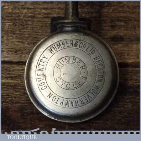 Rare antique Coventry Humber & Co. Ltd. (1887–1899) banjo shaped cycle oil can complete with dipping pin, in good used condition.
