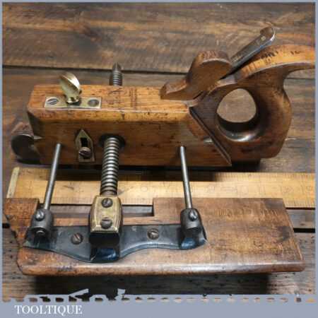 Rare antique David Kimberley & Sons patent plough plane with robust adjustment screw, in good used condition.