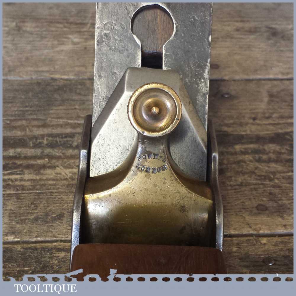Rare Antique Norris No: 13 smoothing plane with rosewood infill and stamped Patent Metal at the front. The Plane is very clean and still has its original lacquer on the brass lever cap and has a Ward Iron. The rear handle has a lost part but this is quite often the case with these old planes.