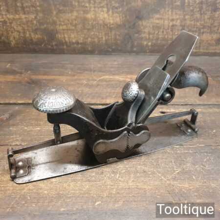 Rare antique Stanley Rule & Level Co. USA Type 1 No: 113 compass plane with original iron, fully refurbished and sharpened ready for use and in good used condition bar some light pitting on the sole. All the components have been thoroughly cleaned and move freely. Note: Stanley only produced this model (Type 1) between 1877 and 1880 when they added four holes to the side wheel adjuster (Type 2) which ran until 1891.