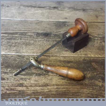 Rare antique Surgeons medical Archimedes drill with boxwood handles and brass fittings, in excellent condition.