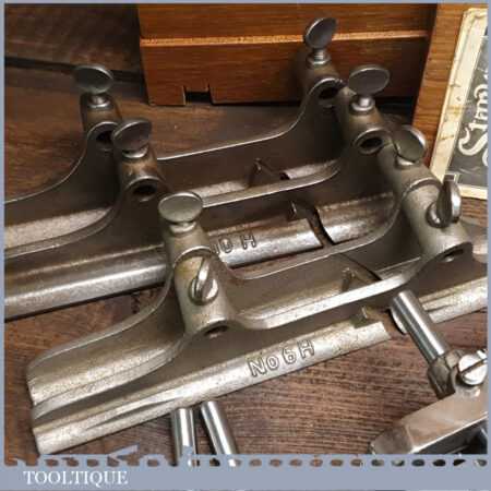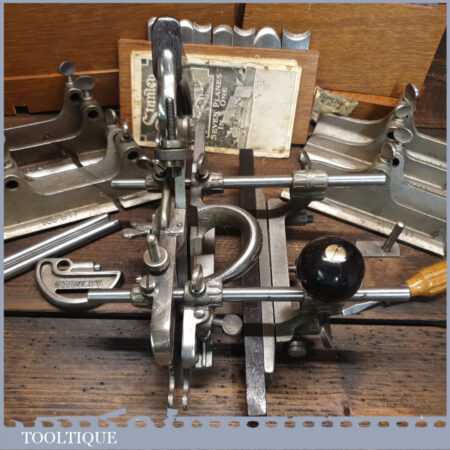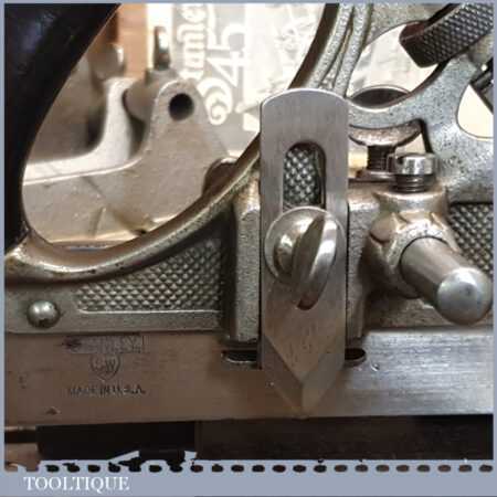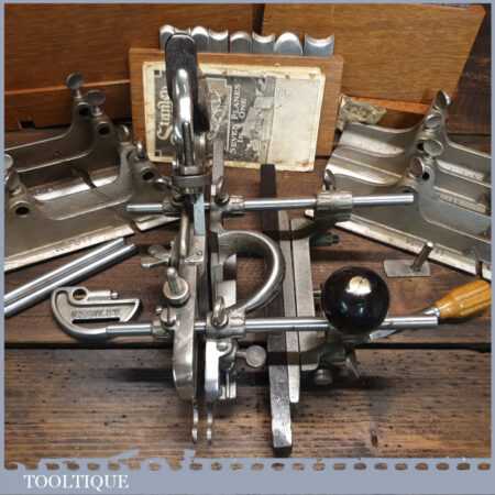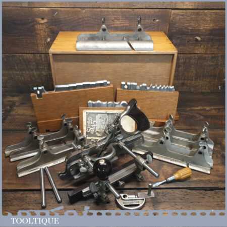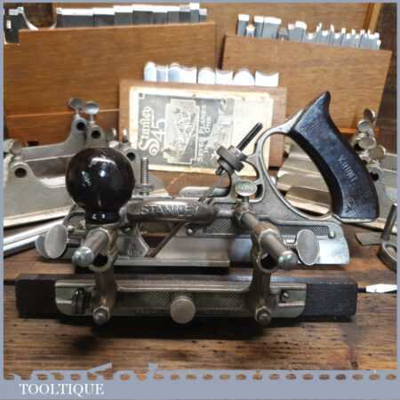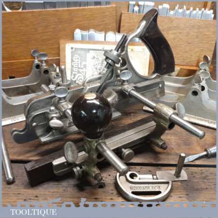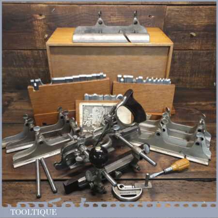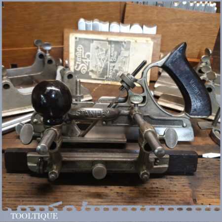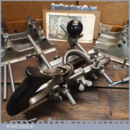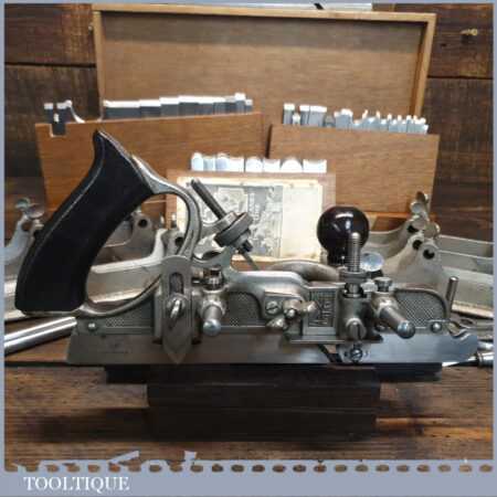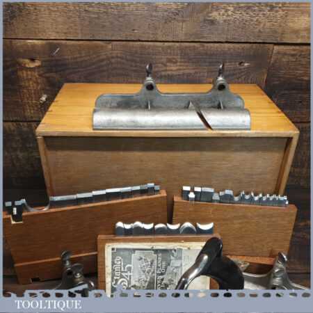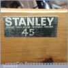 Rare boxed antique Stanley Sweetheart USA No: 45 combination plough plane complete with extra cutters and guides. The plane is in excellent condition and all components move smoothly. Note: We do not sharpen the irons.