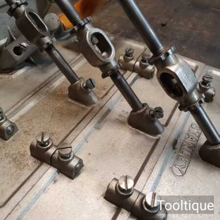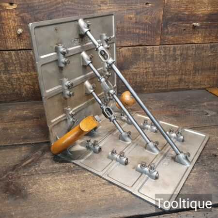 Rare crisp vintage Stanley USA No: 57 Patternmakers Core Box Plane with 3 No: extensions complete with original parts in very good used condition. These Planes are designed for making circular core boxes. The principle is that only a right angle may be inscribed in a semi-circle. The sides of the Plane are at right angles, consequently, the point of the plane will cut on the circumference of the circle when the sides rest on the edges of the cut.