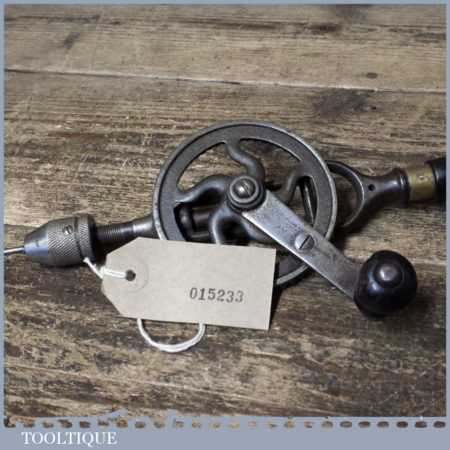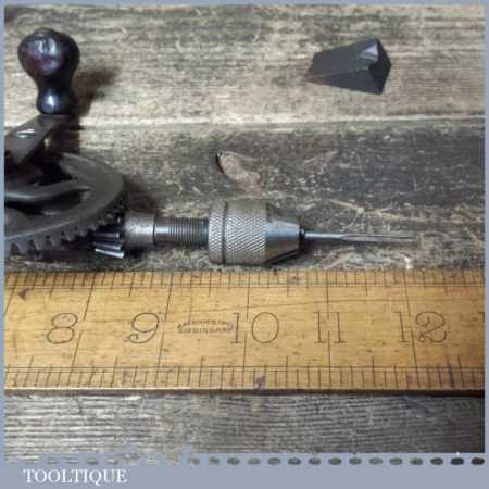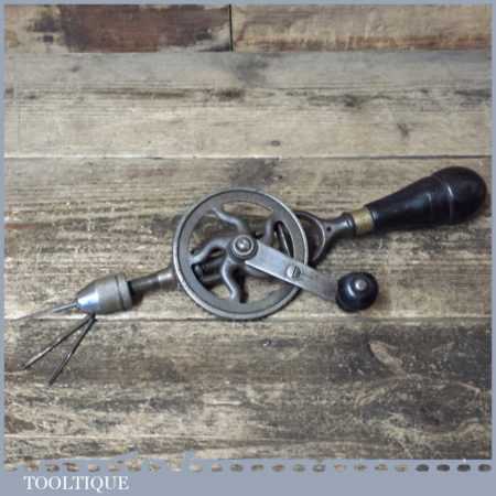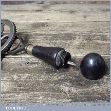 Rare early Fray No: 103 Stanley Rule & Level Co. USA single pinion egg beater hand drill with three bits contained in rosewood handle, in good used condition.