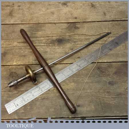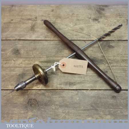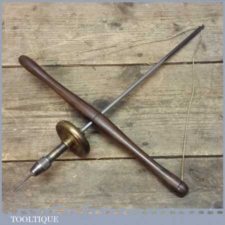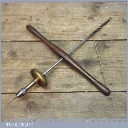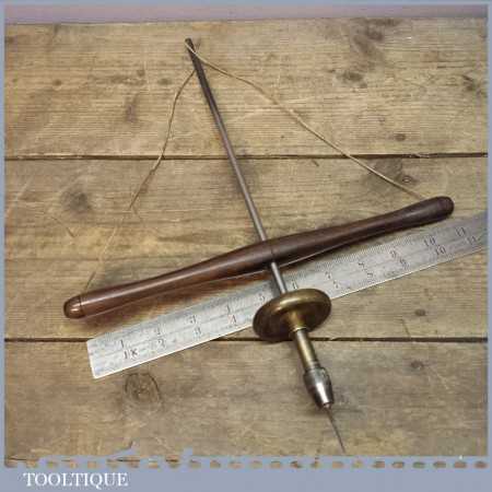 Rare 19th century Jewellers Rosewood handled Archimedes pump bow drill with brass fly wheel. This drill is in good overall condition and are getting pretty scarce and hard to find.