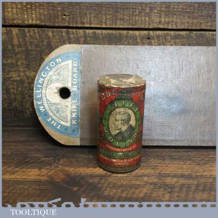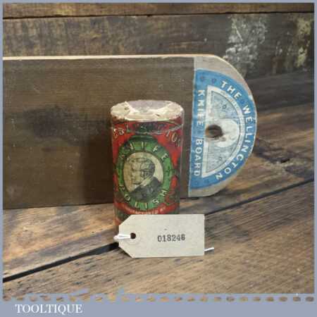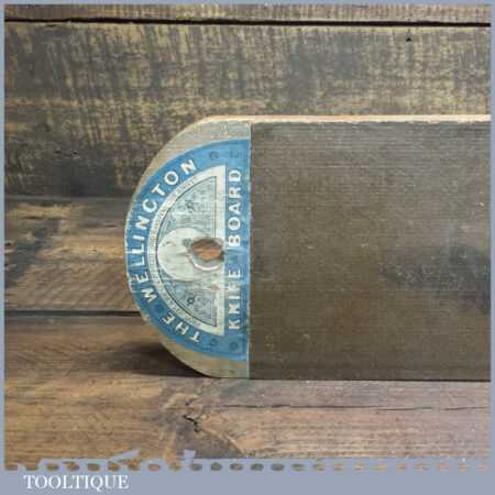 Rare Kitchenalia antique Wellington 24” knife sharpening board complete with original (empty) polish container, in excellent condition for age. A very rare survivor, especially when accompanied with the accessory.