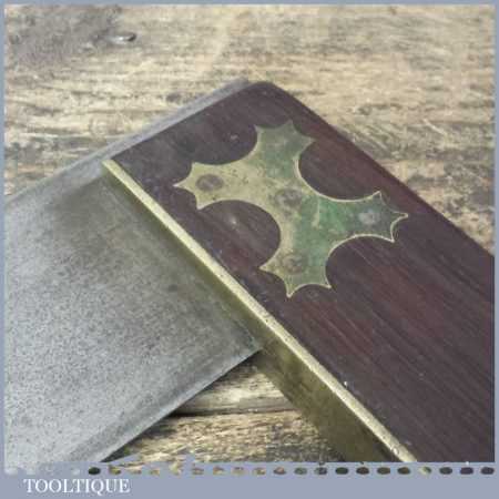 Rare large vintage R. Groves & Sons carpenters rosewood and brass 15” try square in good used condition. This maker is renowned for their quality saws and cutlery but this is the first carpenters’ tool that isn’t a saw we have ever come across by this maker and to add extra to it, these big 15” squares hardly turn up either. This is interesting in regards of Groves having taken the decision to expand their tool range at some point. Given that Groves Carpenters tools don’t turn up it’s a rare find and one that a connoisseur tool collector will appreciate, I know I do.