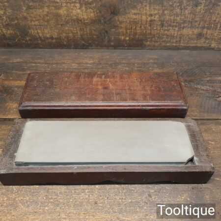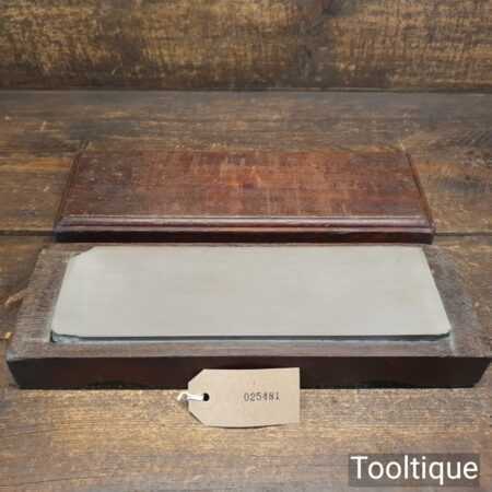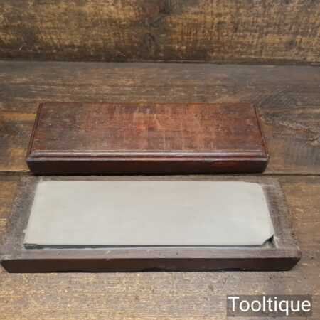 Rare vintage 10” x 3” x ⅞” medium grit carborundum oil stone in Mahogany wood box. Note: To find a size like this is very hard to come by and it is lapped flat ready for use. Suitable for use with a good quality lapping fluid, see our Acutus Brand in store.