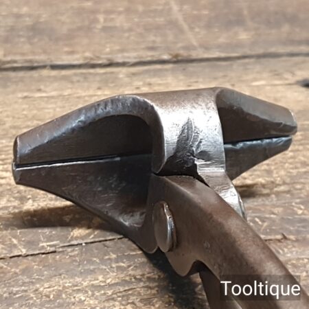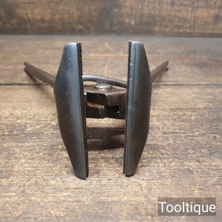 Rare vintage 9” Aux Mines De Suede A Paris Upholsterers Stretching Pliers with 3.5” crimped jaws and locking ring in good used condition. Note: Possibly used for Leather.