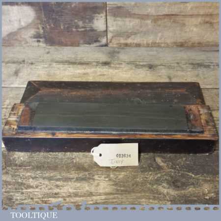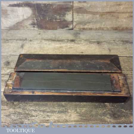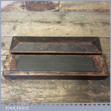 Rare vintage 9” x 2” natural Turkey oil stone in pine box, in good used condition. Note: lapped flat ready for use.
