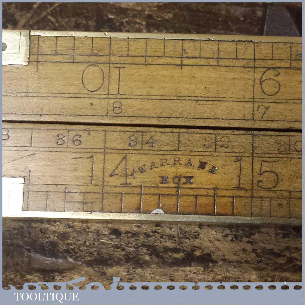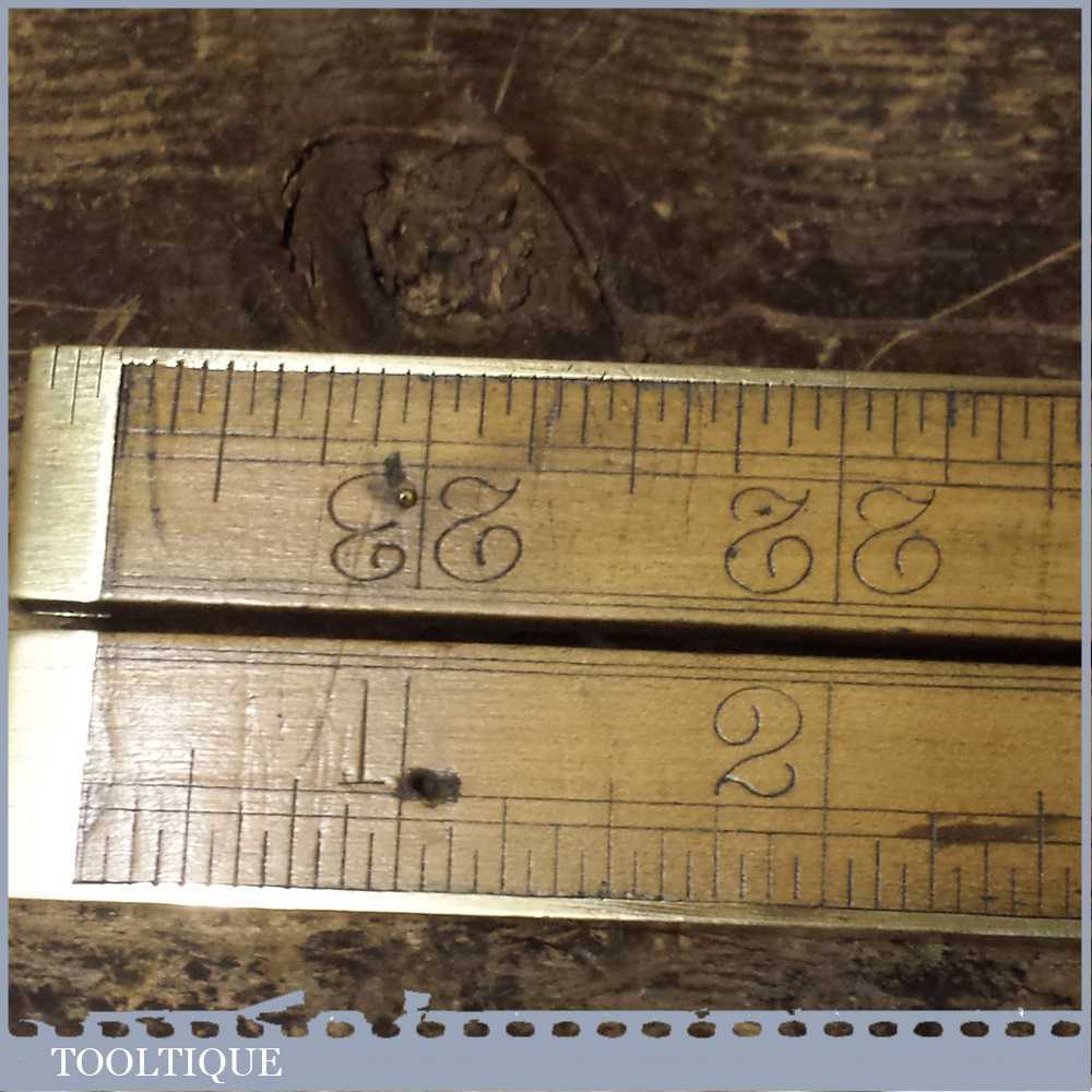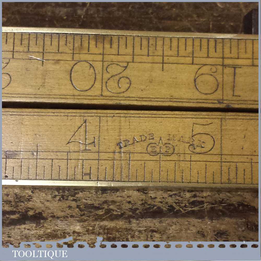 Very rare vintage Edward Preston brass bound 2ft boxwood folding ruler made for Melhuish and in good used condition. The ruler is in very good condition apart from a brass hold fast pin is missing.