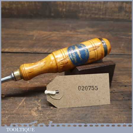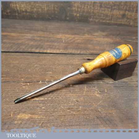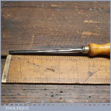 Rare vintage Erik Anton Berg, Sweden 1/8” straight incannel gouge chisel with buffered beechwood handle in good used condition, fully refurbished sharpened and honed ready for use. Note: Gouges, especially of this size are exceptionally hard to find.
