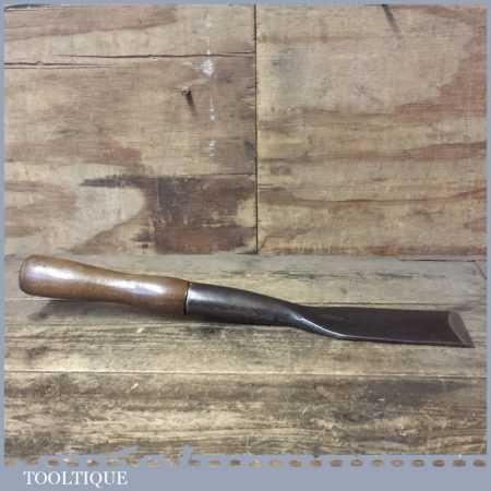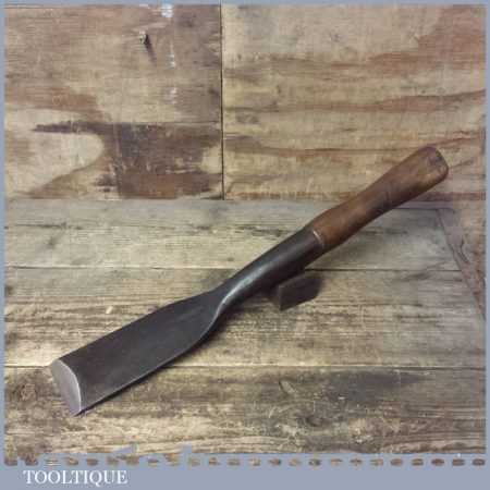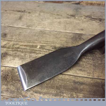 Rare vintage Gilpin 2 7/8” wide Timber Framing socket chisel or slick refurbished ready for use and in good used condition. The chisel has been flattened on the underside and sharpened (water cooled) to make it easier to retain its edge with a flat stone. This is a beast of a chisel made with traditional methods of hand forging with laminated high carbon steel and sharpens with the keenest of edges.