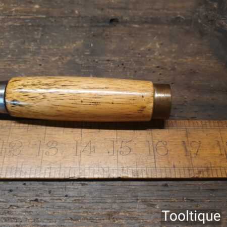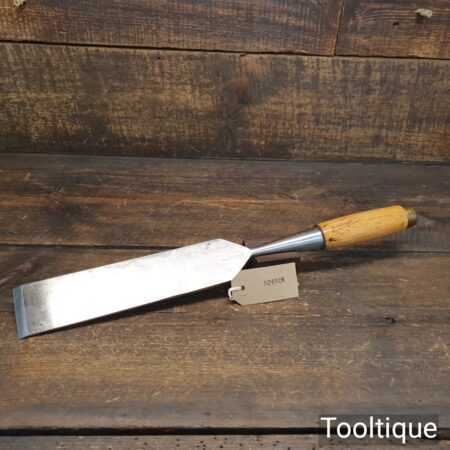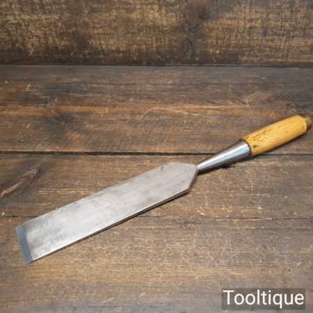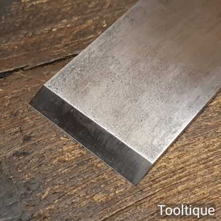The chisel has been checked to ensure the tang is seated properly and the handle is solid and fit for use. All refurbished chisels are water-cooled during the sharpening process to ensure the tempering is not affected.