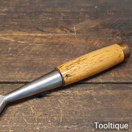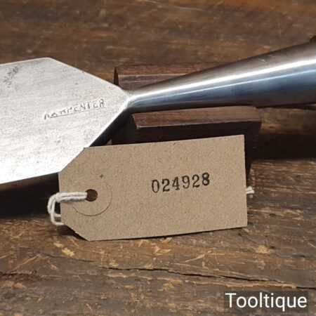 Rare vintage Karpenter 2″ Framing socket firmer paring chisel with hardwood handle, in good used condition. Although this has a partial makers mark this is by the Winsted Edge Tool Works USA.