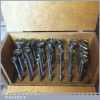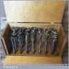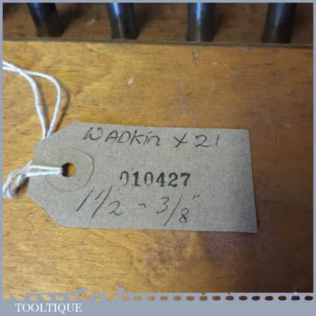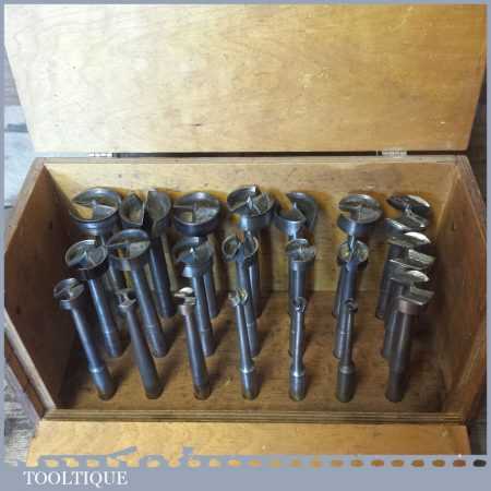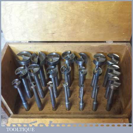 Rare Vintage set of 21 No: Wadkin forstner bits (3/8” – 1 ½”) in custom made beechwood box and in good used condition. It’s in creditably hard to find single bits by this renowned manufacturer of machinery let alone a comprehensive set like this. Note: If intended for use these will require some TLC.