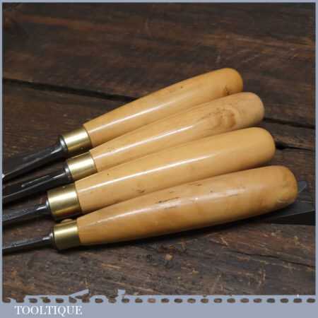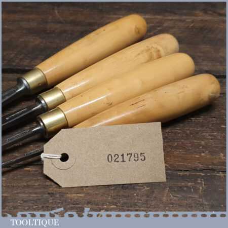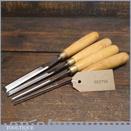 Rare vintage set of 4 No: Albert Scharwaechter, Alsace, France bevel edge chisels with boxwood handles in good little used condition.