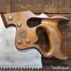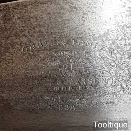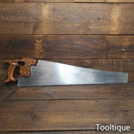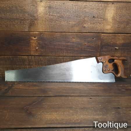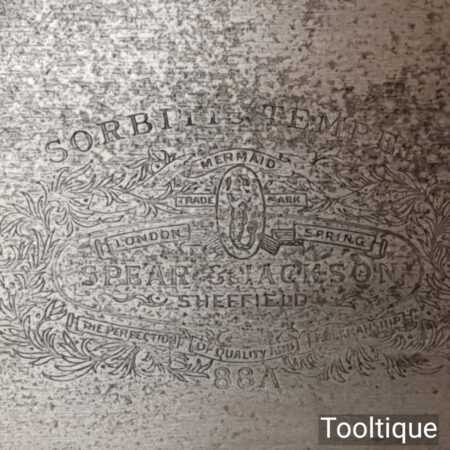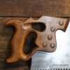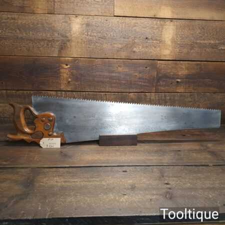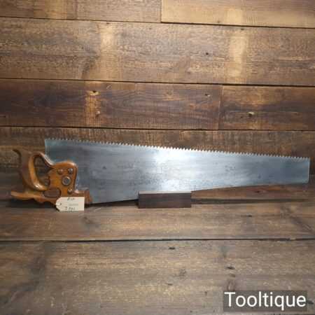 Rare vintage Spear & Jackson No: 88A Sorbitic 28” rip saw with 3 tpi, fully refurbished and sharpened ready for use. This old saw has the thumb hole grip in the beechwood handle for a two-handed thrust similar to Disston, which again adds to its rarity. This a superb saw and given its quality puts this amongst the most desirable saws ever produced