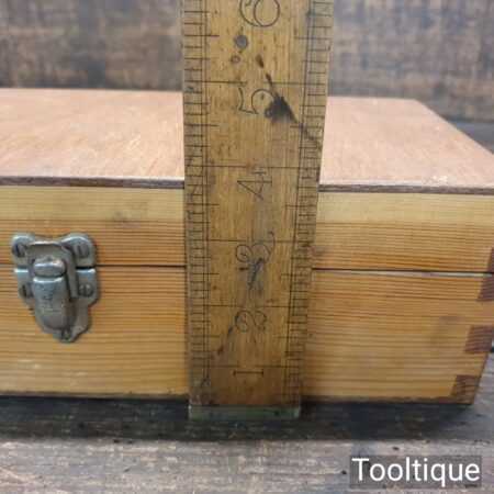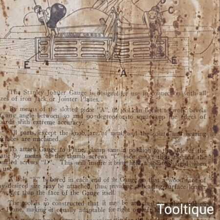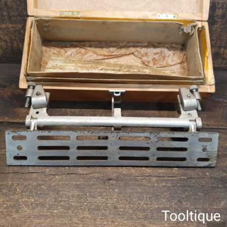 Rare Vintage Stanley No: 386 Jointer Gauge with its original box and instructions. The Gauge is in great condition with most of its original nickel coating and comes with a purpose-made wooden housing box. Note: Original box is in a delicate condition, but this is one of the best I’ve seen to date for condition.