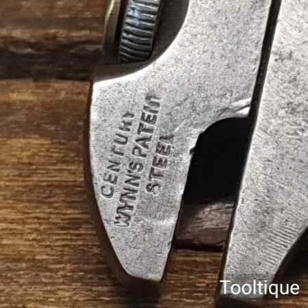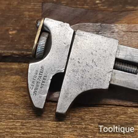 Rare vintage unique 5 ½” Century Wynn’s Patent Steel adjustable bicycle wrench with brass adjuster in good used condition. Late 19th century.