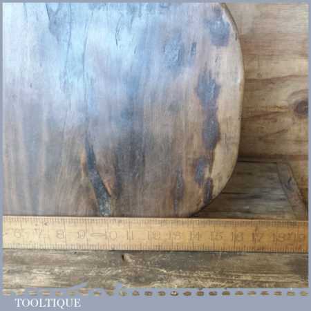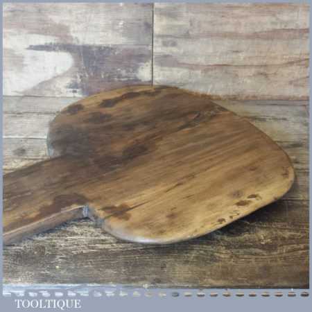 Rustic & rare antique baker’s treen peel or bakers paddle with an unusual cranked handle is in good used condition considering its age. This is approx 3ft 6ins overall in length and was made from one piece of wood. Adze marks are visible where the handle was primitively handcrafted to fashion this kitchen tool. This was created entirely with edge tools which suggest it is 18th century or possibly earlier.