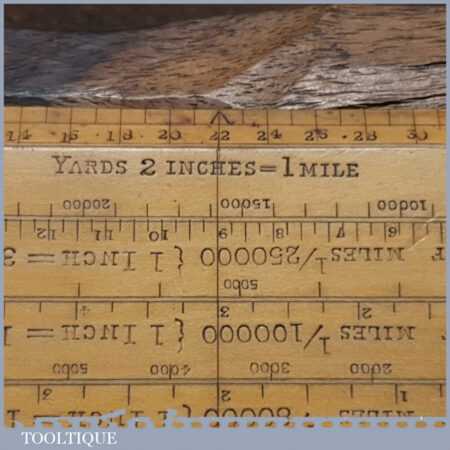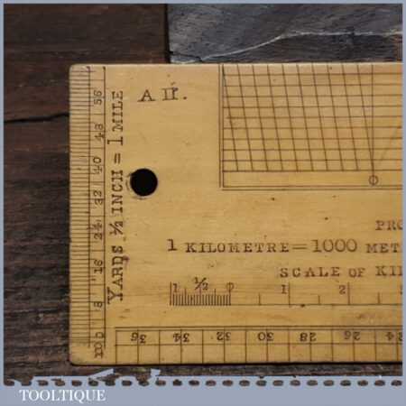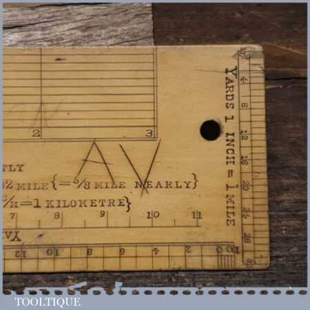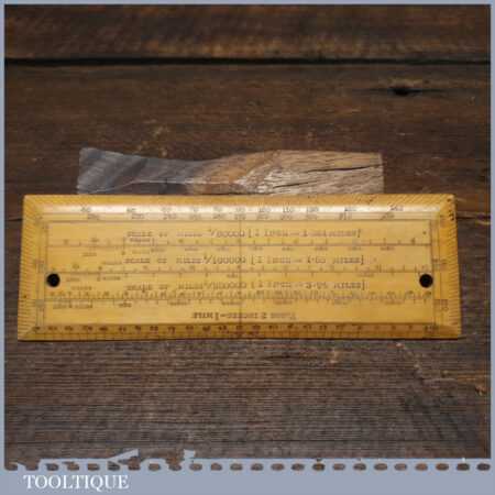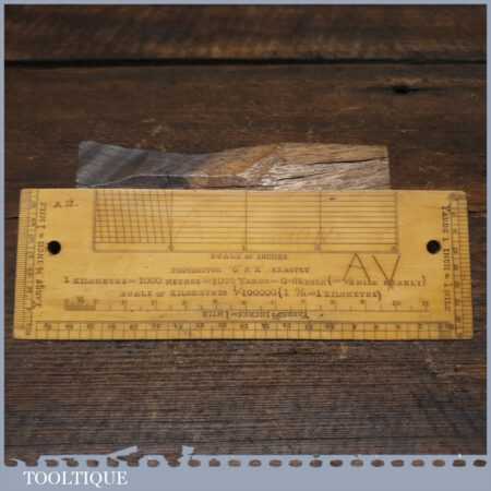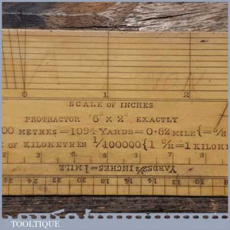 Scarce antique 6″ boxwood imperial military protractor scale rule in good used condition.