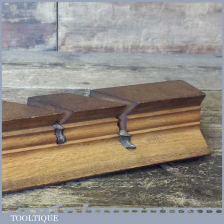 Scarce antique Alex Currie of Glasgow (1833-44) twin ironed beechwood moulding plane in good used condition.