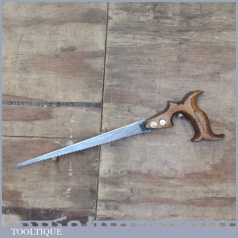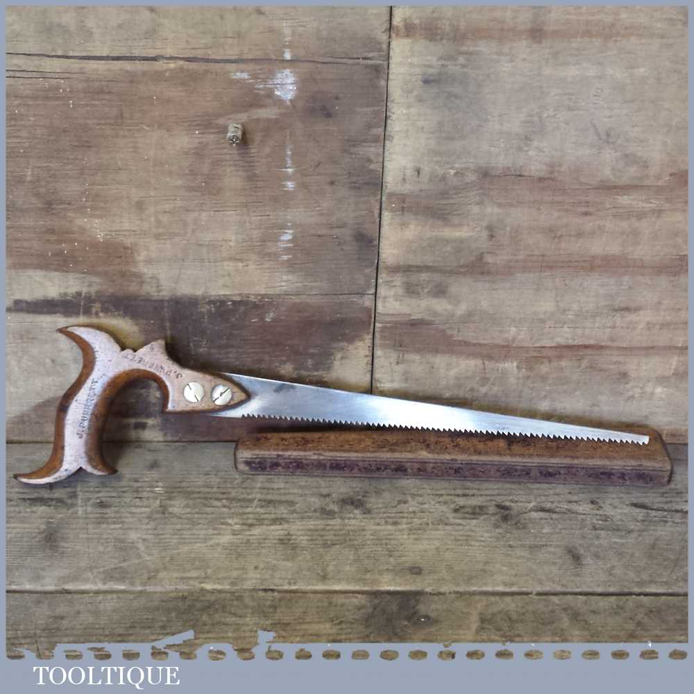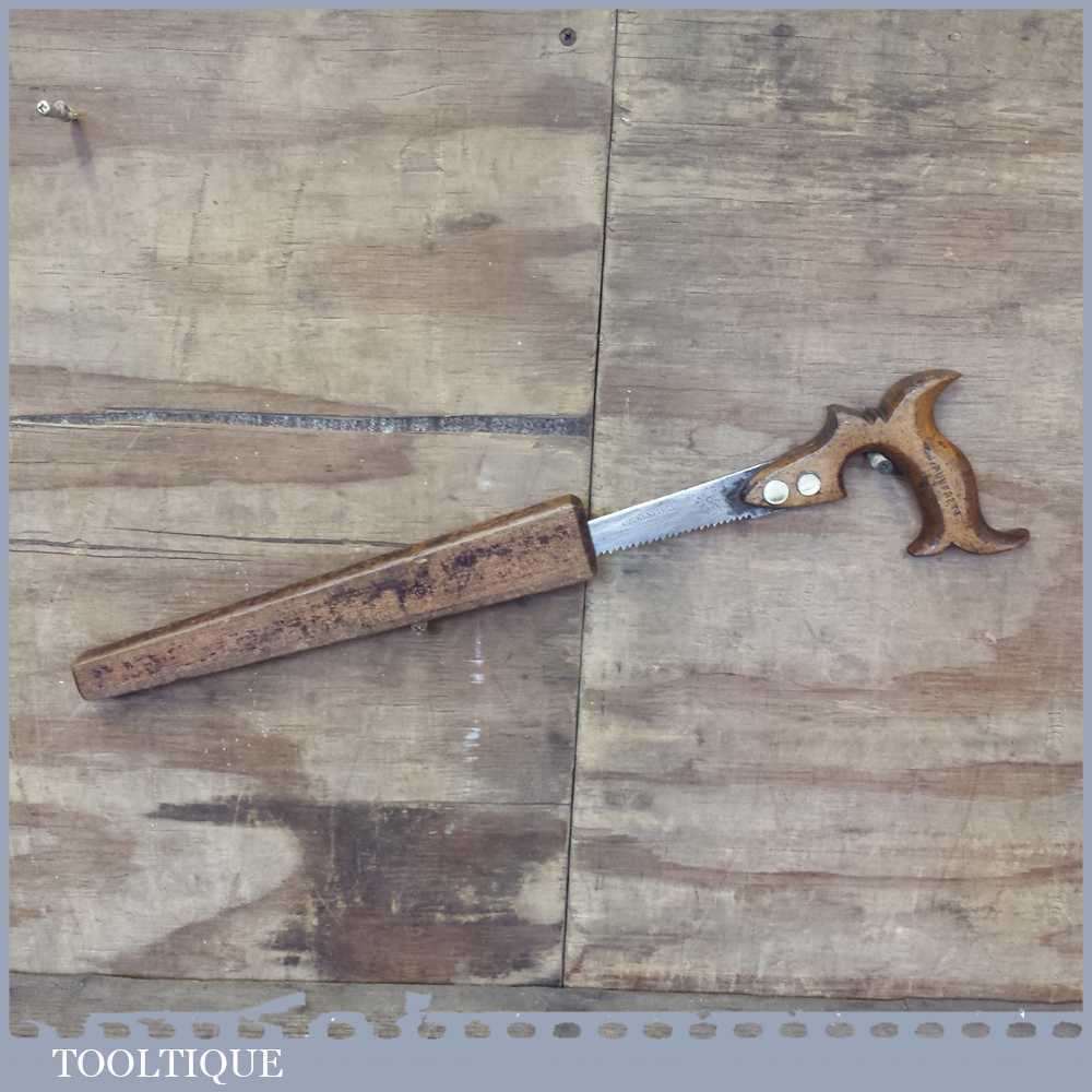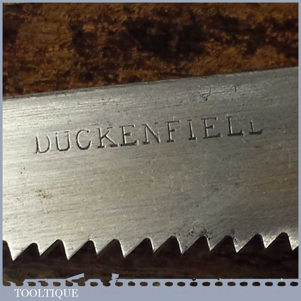 Scarce antique Duckenfield split nut keyhole saw with wooden holster in good sharp condition.