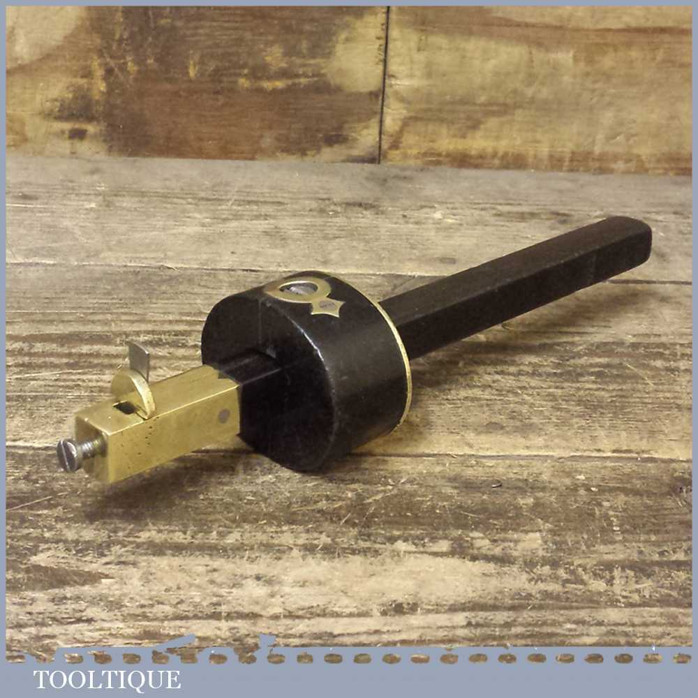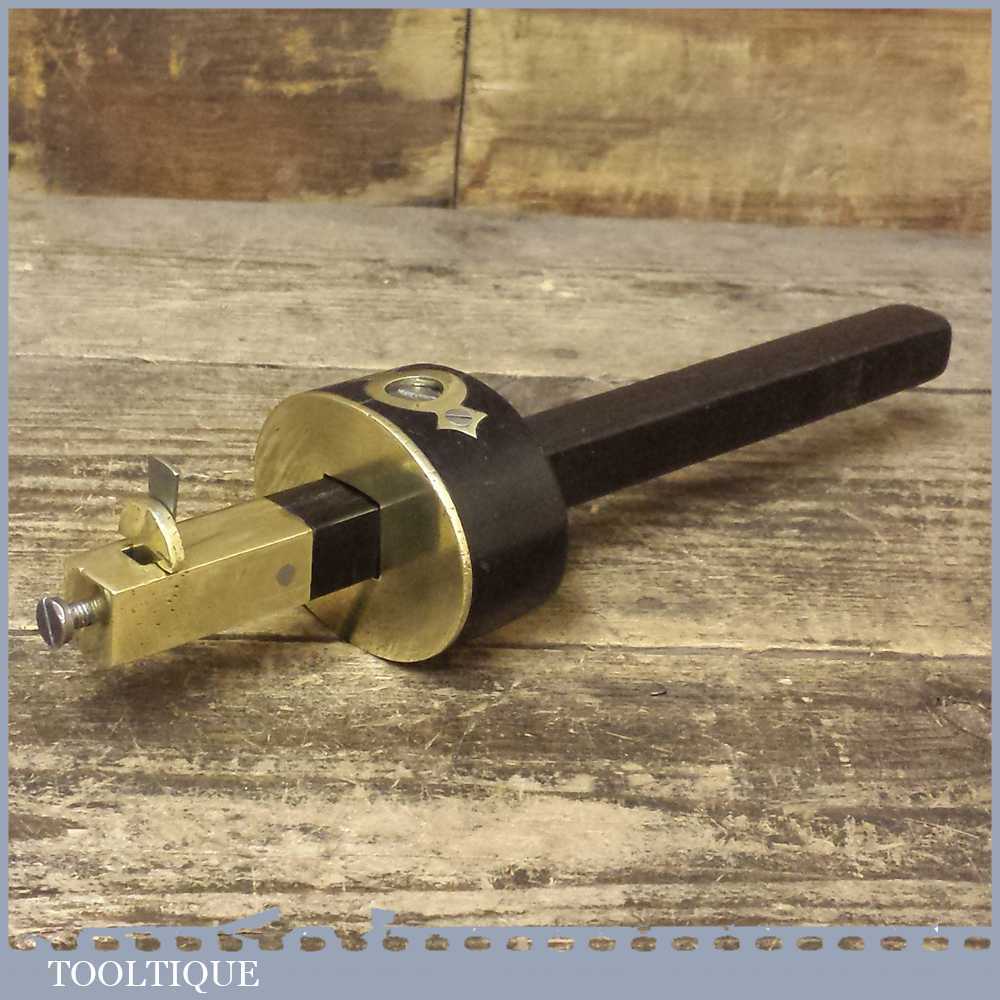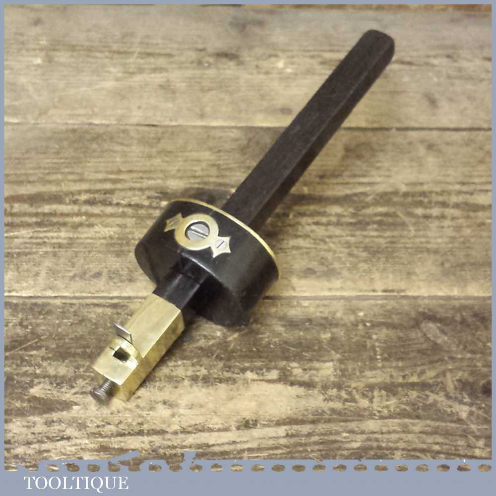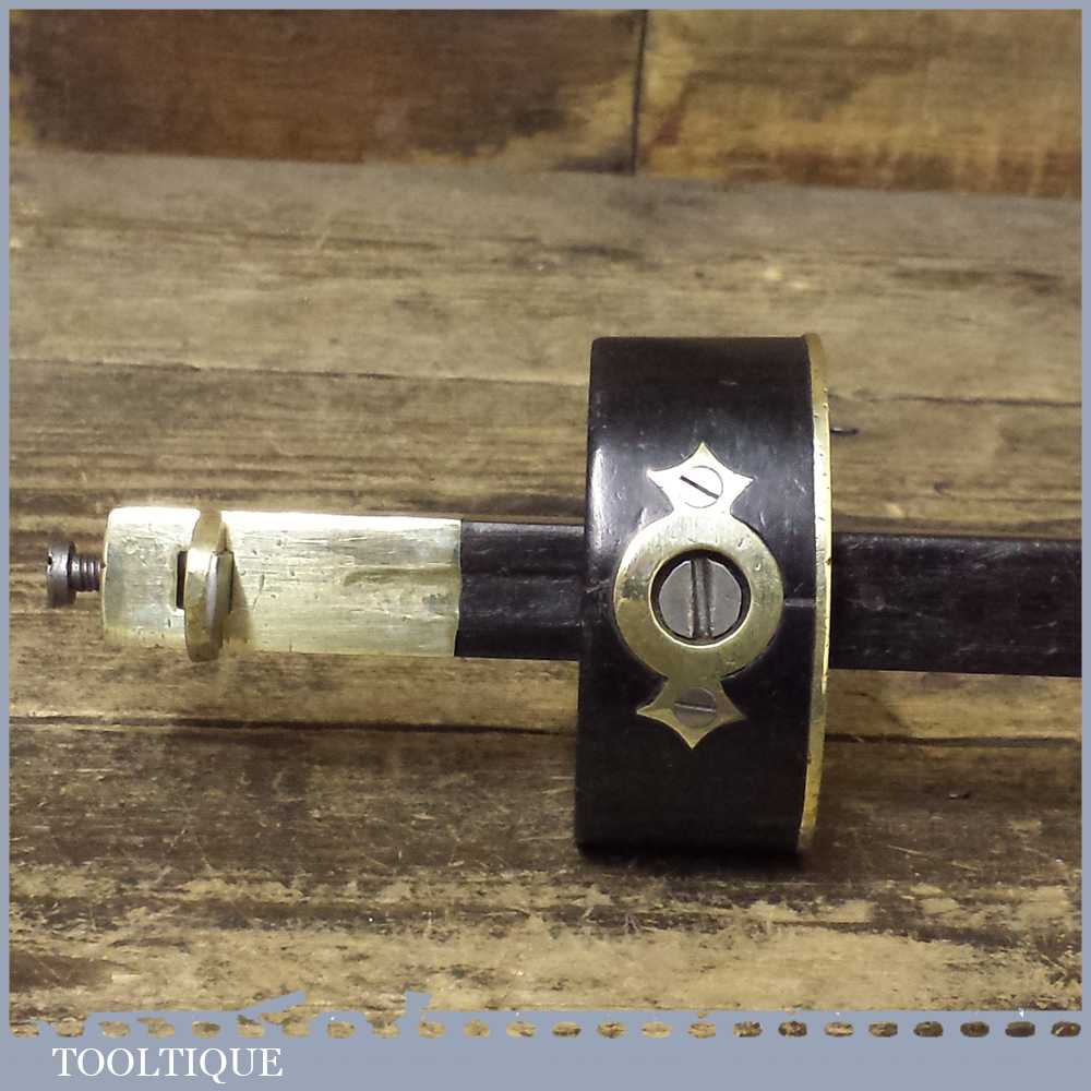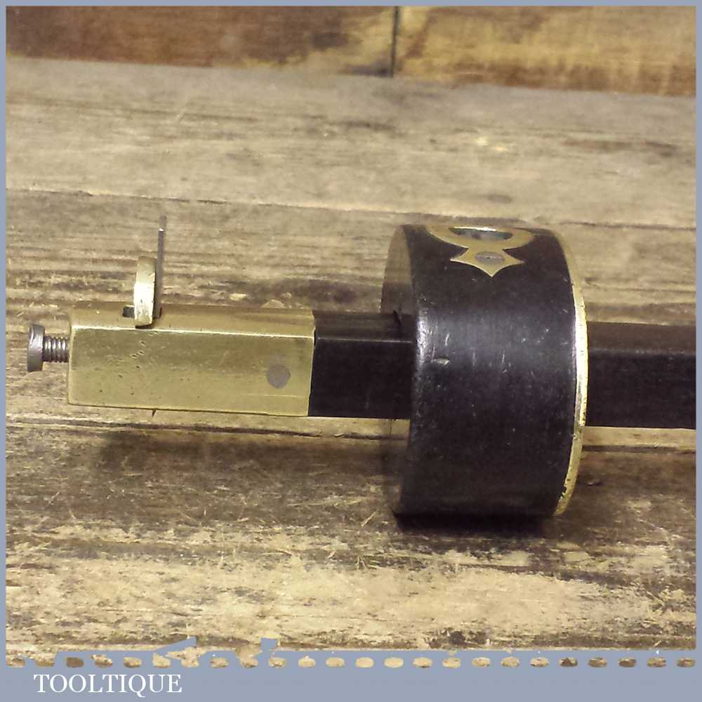 Scarce antique Ebony and brass cutting gauge in good overall usable condition and moves and tightens as it should. Note: age crack in the main body probably due to age but this is quite stable.