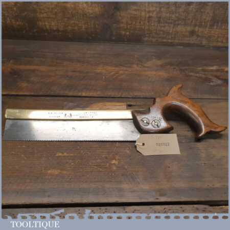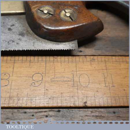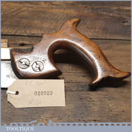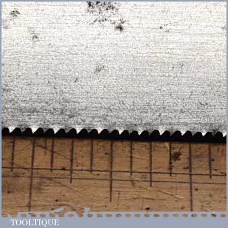 The saw has been thoroughly cleaned, jointed, resharpened and set by hand so that all the hard work of getting an old vintage saw right has been undertaken. We do this so that the next sharpening is easier and no more than a quick freshen up would be required. Those who are familiar with sharpening will know this is no small job and requires skill, effort and time to achieve good results.