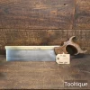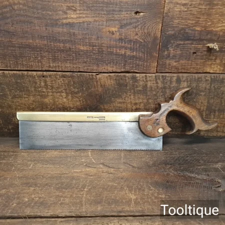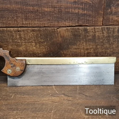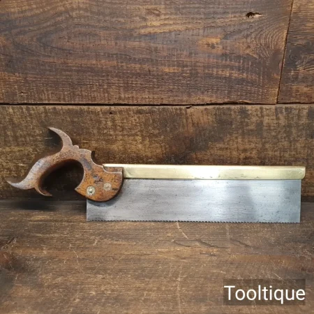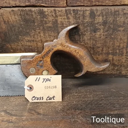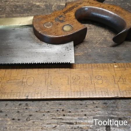 Scarce Antique I. Hill Late Howel 12” Brass Back Cross Cut Hand Saw, refurbished & Sharpened ready for use and in good used condition. This has been sharpened using all three disciplines of Slope, Rake & Fleam for a more efficient and accurate, this cuts under its own weight. The saw has been thoroughly cleaned, jointed, resharpened and set by hand so that all the hard work of getting an old vintage saw right has been undertaken. We do this so that the next sharpening is easier and no more than a quick freshen up would be required. Those who are familiar with sharpening will know this is no small job and requires skill, effort and time to achieve good results.