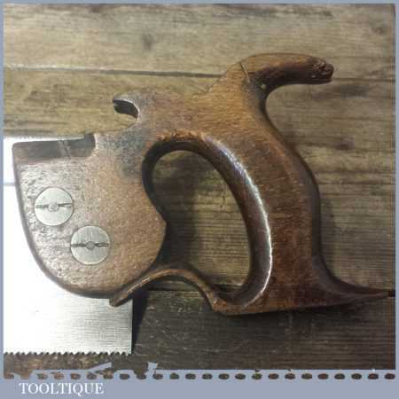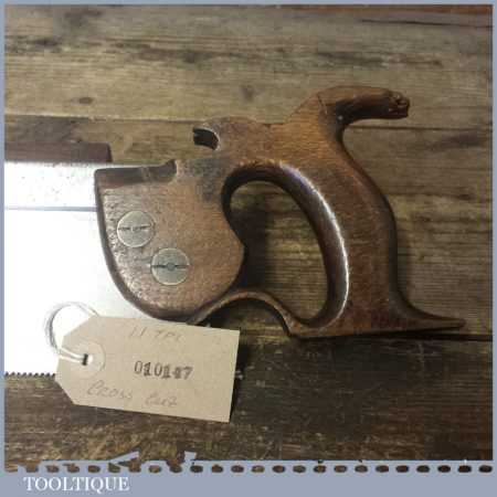The saw has been thoroughly cleaned, jointed, resharpened and set by hand so that all the hard work of getting an old vintage saw right has been undertaken. We do this so that the next sharpening is easier and no more than a quick freshen up would be required. Those who are familiar with sharpening will know this is no small job and requires skill, effort and time to achieve good results.