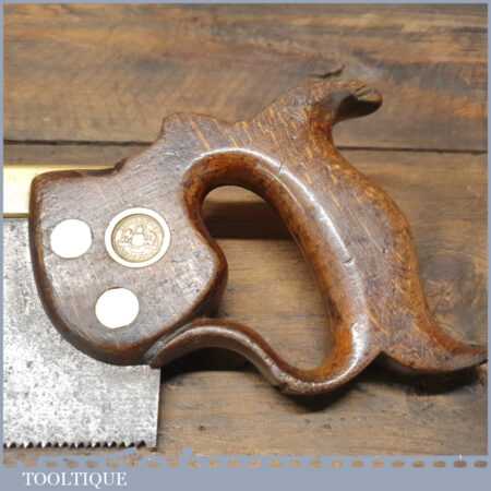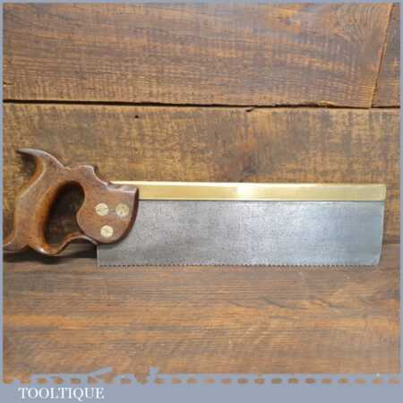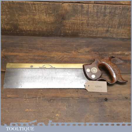 Scarce antique John Baker & Co. 12” brass back tenon saw with 10 tpi, fully refurbished and sharpened cross cut ready for use. Note: John Baker & Sons operated in Sheffield between 1876-1942 but the & Co suggests this may be from a period before the sons was added. No Reference of the & Co in Simon Barleys British saw makers book.