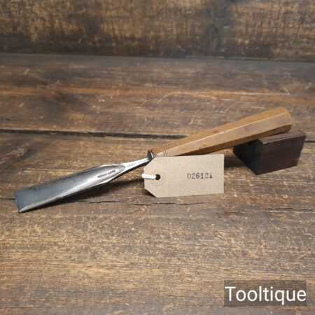 The chisel has been checked to ensure the tang is seated properly and the handle is solid and fit for use. All refurbished chisels are water-cooled during the sharpening process to ensure the tempering is not affected.